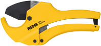 Single-hand operation with ratchet feed for pipes ≤ Ø 42 mm, ≤ Ø 1⅝". Sturdy aluminium version. Ergonomically shaped handles for fast cutting. Effortless working through power transmitting ratched feed. Quick reverse saves time and effort. Right angle, burr-free cut through exact pipe support and guided blade on both sides. Specially hardened, wedge-shaped blade, quick and easy to change without tools.